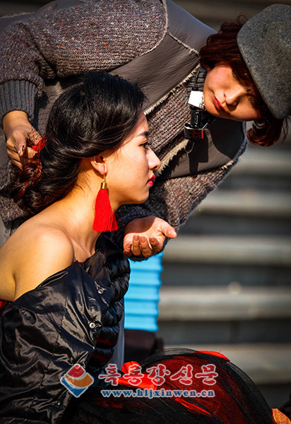 소득 증대는 자연히 주민들의 삶의 질 향상으로 이어지고 있다. 한 신부가 하얼빈음악공원에서 웨딩 촬영을 위해 메이크업을 받고 있다./주성일 기자