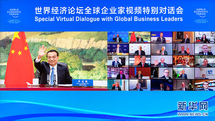 9월 15일, 리극강 국무원 총리가 북경 인민대회당에서 세계경제포럼 글로벌기업가 특별화상대화에 참석하여 축사를 발표하였으며 아울러 기업가대표와 교류했다. 대화가 화상으로 진행됐다.