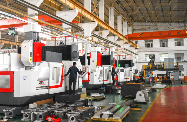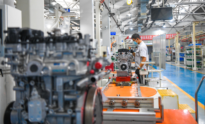 할빈동안자동차동력주식유한회사(哈尔滨东安汽车动力股份有限公司) 작업장 내 생산라인. /왕송 신화사 기자 찍음