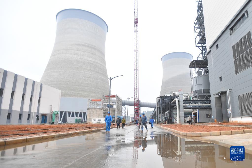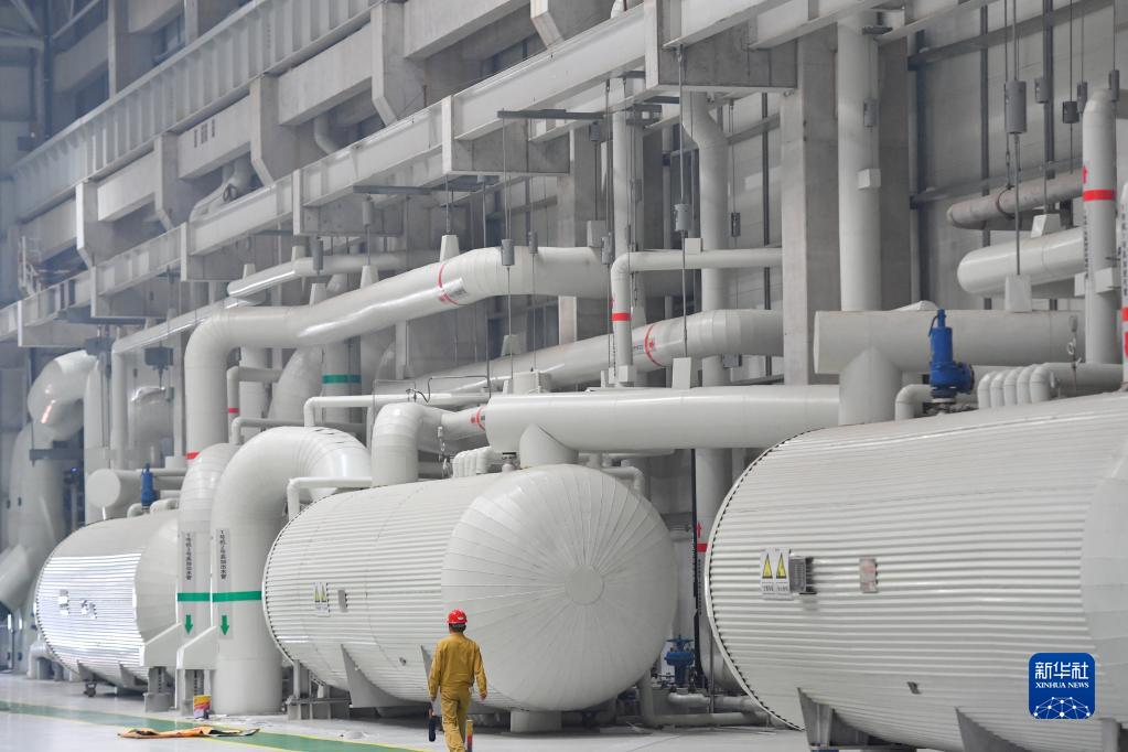 11월 3일, 국가에너지그룹 호남성영주발전소에서 직원들이 1호기 고압가열기를 지나고있다.
