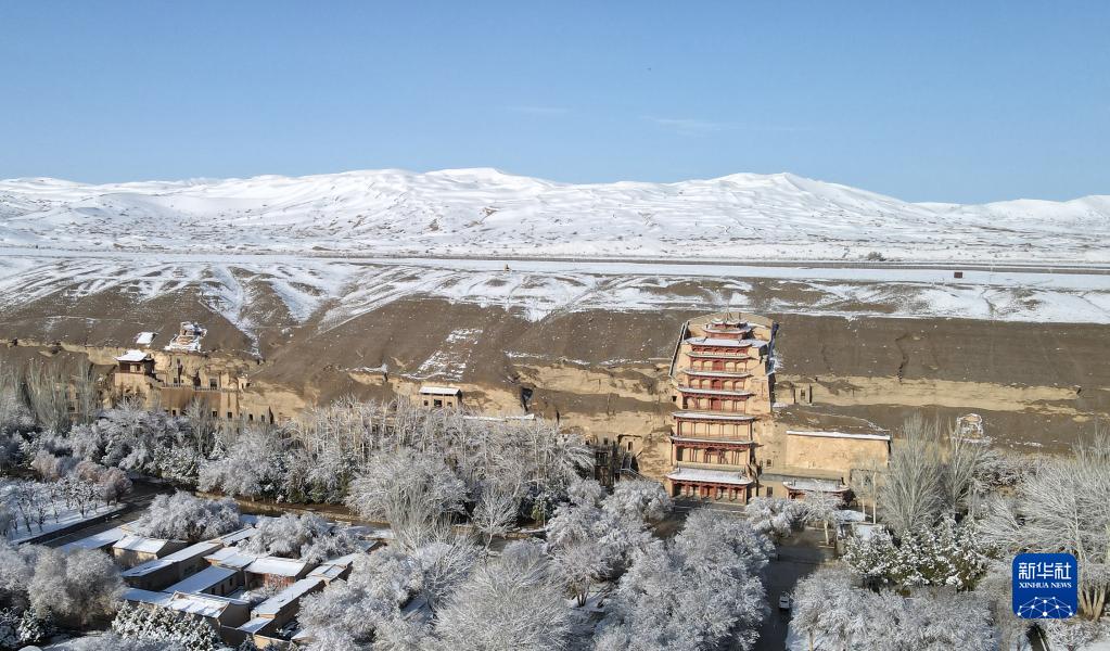 지난 3월24일부터 25일까지 감숙성 돈황시에 봄눈이 내렸다. 눈 내린 뒤 세계문화유산 돈황 막고굴이 빛으로 빛났다.