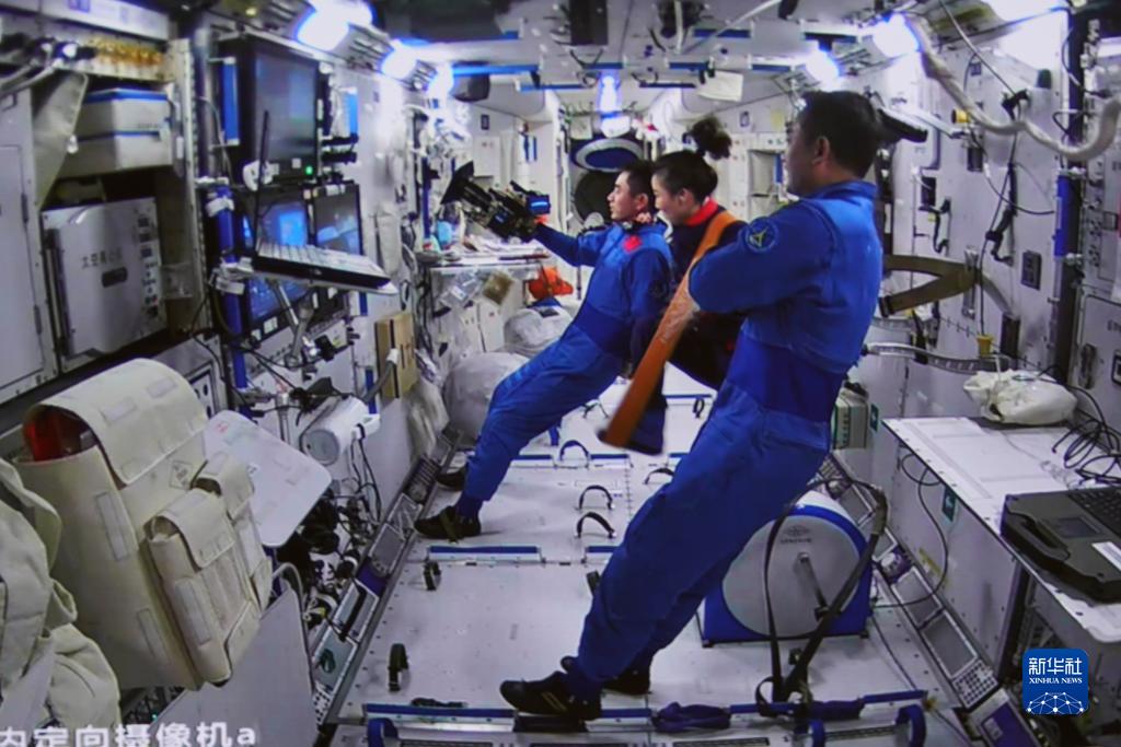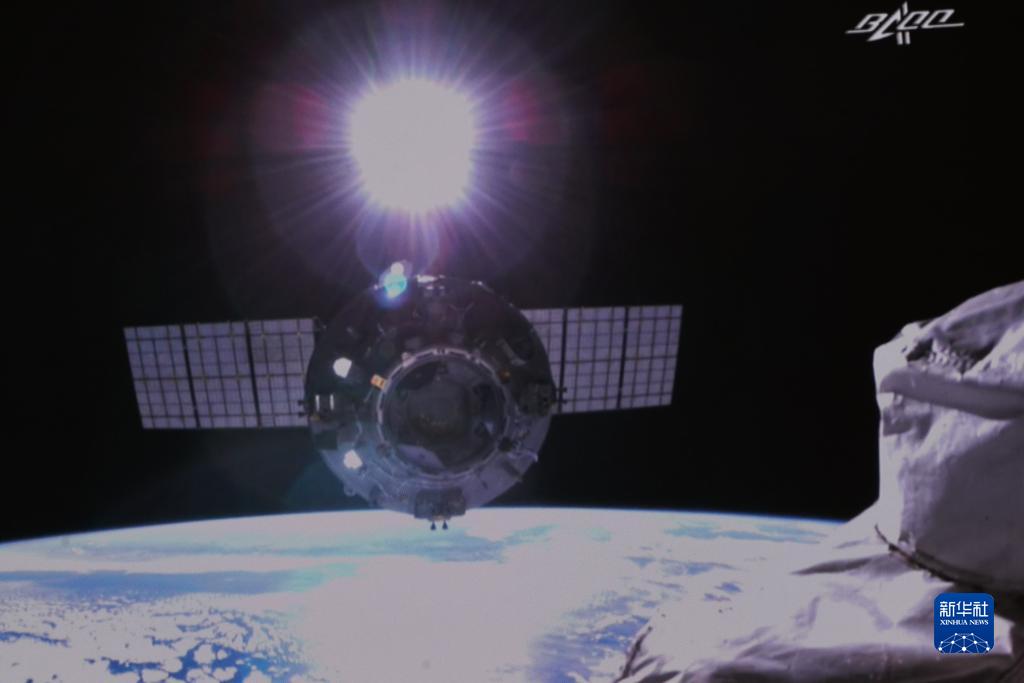 3월 27일, 북경우주비행통제센터에서 찍은 천주 2호 화물우주선이 우주정거장 핵심모듈 조립체에서 분리하는 모습. 사진은 천화핵심모듈 로케이션 카메라의 실시간 모습이다.