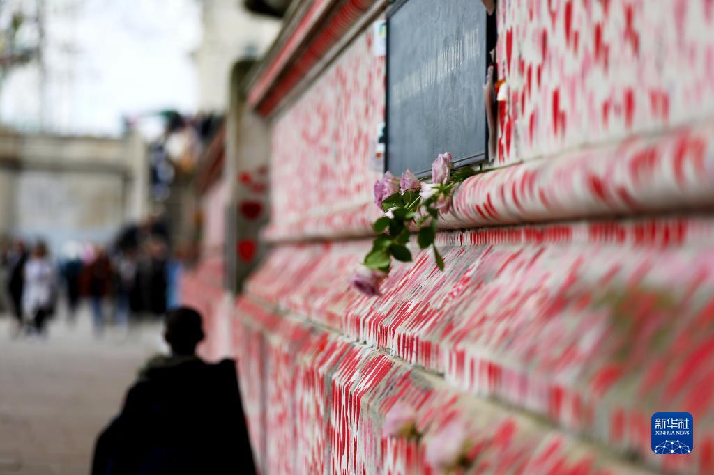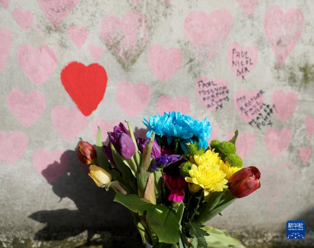 3월 27일(현지시간) 영국 런던 템스강 남쪽 제방의 ‘코로나 희생자 추모벽’ 앞에 꽃다발이 놓여 있다. 코로나19 오미크론 하위 변이인 ‘BA.2’, 일명 ‘스텔스 오미크론’ 이 영국에서 확산하고 있다. 영국 정부가 25일 발표한 데이터에 따르면 일주일간 신규 확진자가 30% 가까이 급증한 것으로 나타났다.