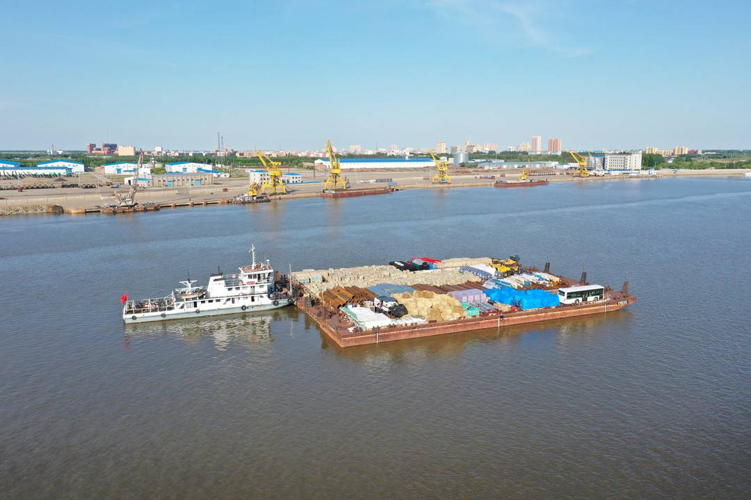 6월 12일 16시 15분, 대리석, 작업차량 및 부품 등 수출화물을 만재한 바지선 4척이 끌배 한척에 이끌려 동강 통상구 서쪽항구 수운부두를 서서히 떠났다. 화물 총 무게는 2860톤이고, 화물의 가치는 약 2000만원에 이르는데 흑룡강성이 처음으로 "항구 도착 직접 선적"방식을 취해 수출하는 화물들이다.