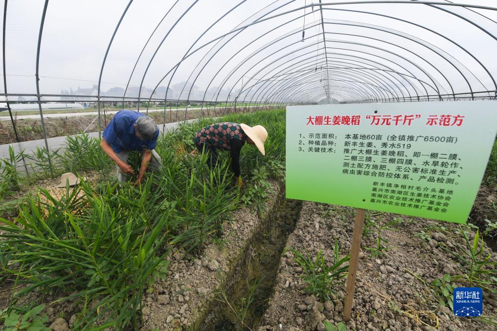 하지 전후, 절강성 가흥시 남호구 신풍진의 9,000여무 생강이 대량 수확 출시기에 들어섰는데 년생산액이 2억원을 초과할 것으로 예상된다. 최근 몇 년 신풍진에서는 비닐하우스 생강 재배 관리 및 보호 신기술을 보급하고, 같은 필지에 상반기에는 생강을 심고 하반기에는 늦벼를 심어, 생강 + 늦벼의 재배 모식이 생강 재배농들에게 높은 수익을 가져다 주고 있다.
