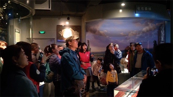 중국 (할빈) 삼림박물관의 자원봉사자가 관람객들에게 생태의 아름다움에 대해 설명하고 있다.