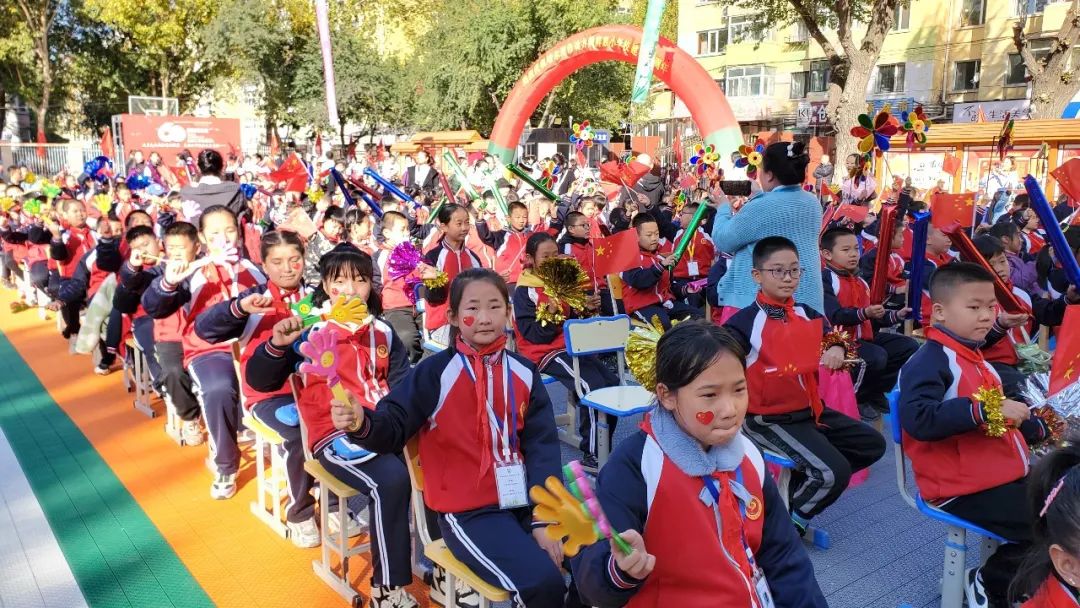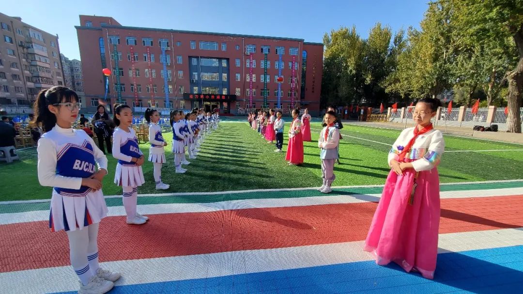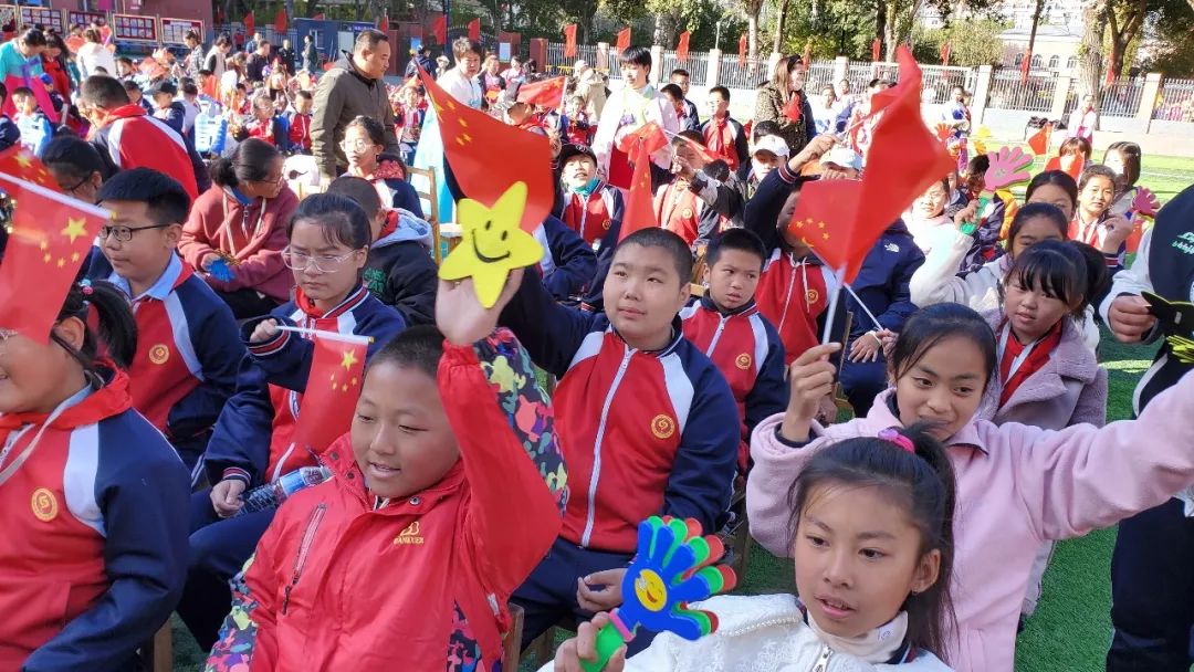 이날 동력조선족소학교의 학생들은 1학년부터 5학년까지 학년별로 질서정연하게 앉아서 가을추위에도 아랑곳하지 않고 오성붉은기 고무풍선 등을 흔들면서 시종 뜨거운 응원을 해주었다.