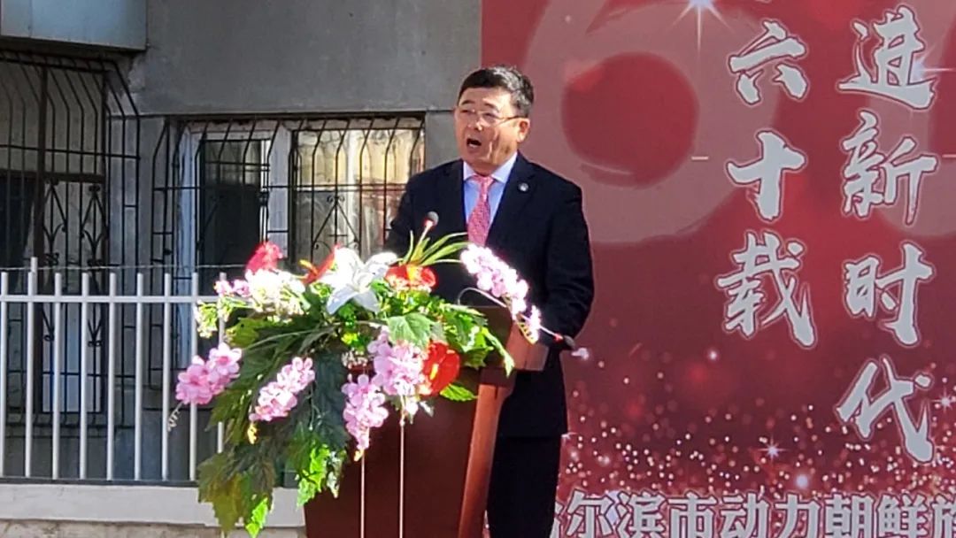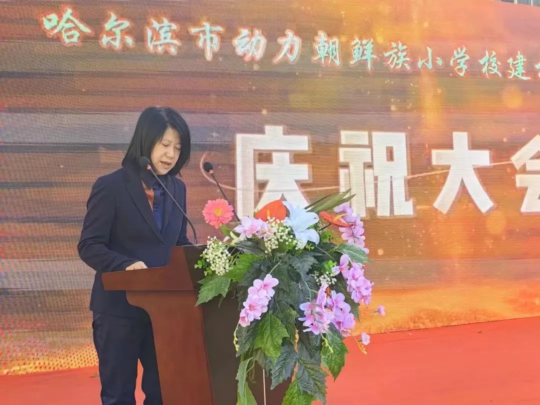 그는 “오늘의 축제가 비단 동력조선족소학교 력사에서의 중요한 대사일뿐만아니라 향방구교육사업발전의 일대 희사”라고 정의하고 나서 “향방구정부와 교육국을 대표하여 열렬한 축하를 한다”고 했다. 그는 “동력조선족소학교가 60년 력사를 기록해오면서 수많은 인재들을 배양해냈으며 교육사업과 민족단결진보사업의 발전에 중대한 공헌을 하였다”고 높이 평가했다. 그는 동력소학교가 그간 수상한 “성급표준화선진학교”, “할빈시의무교육특색학교”, “성민족단결진보시범구시범단위”, “전국청소년교정축구특색학교” 등 영예명칭을 일일이 렬거하면서 동력조선족소학교가 “성민족문화교육기지학교”로 선정되였으며 할빈시민족인재양성의 요람으로 거듭나고 있다고 강조했다.