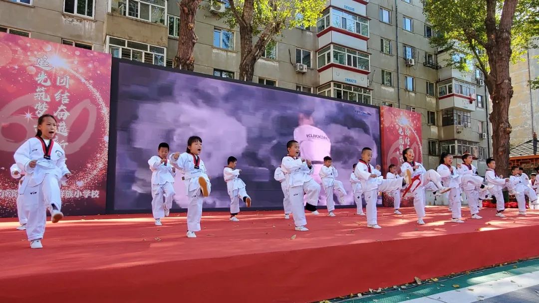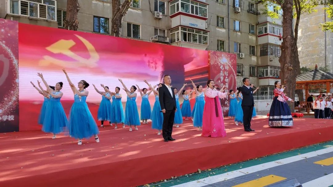 제2부행사에서는 학교운동장에 설치된 무대에서 전교 사생들이 알심들여 준비한 “빛을 따라 새시대로” 문예공연이 펼쳐졌다. 선참으로 전체 교사들이 무대에 올라 연출한 합창 “국가”, “민족단결, 중국꿈, 조선족소학교의 꿈” 등 내용들은 시대적특색과 사명감을 잘 담아내어 박수갈채를 받았다. 소학교 3,4학년 학생들이 하모니카로 연주한 아리랑 가곡은 참가자들의 심정을 울려주었으며 흥겨운 아리랑 연주에 따라 진행한 학생들의 농악무는 농경민족으로서의 긍지를 느끼게 하였다. 바로 옆집인 할빈시조선족제1중학교의 학생들이 “수확의 기쁨” 민족무용을 선보여 서로 돕고 방조하는 우수한 민족전통을 이어가는데 희망을 가지게 하였다.