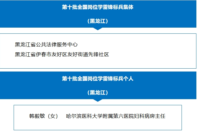 얼마전 중앙선전부가 제10진 전국 ‘뢰봉 따라배우기’ 모범 수훈자 명단을 발표했다. 이번에 선정된 모범은 총 100명(단체 및 개인 포함)으로, 주로 기업·농촌·정부 기관·학교·지역사회·병원·군대 등 현장 일선에서 활동 중인 기층 인원들로 구성됐다. 이 중 흑룡강성의 2개 단체와 1명 개인이 이름을 올렸다.