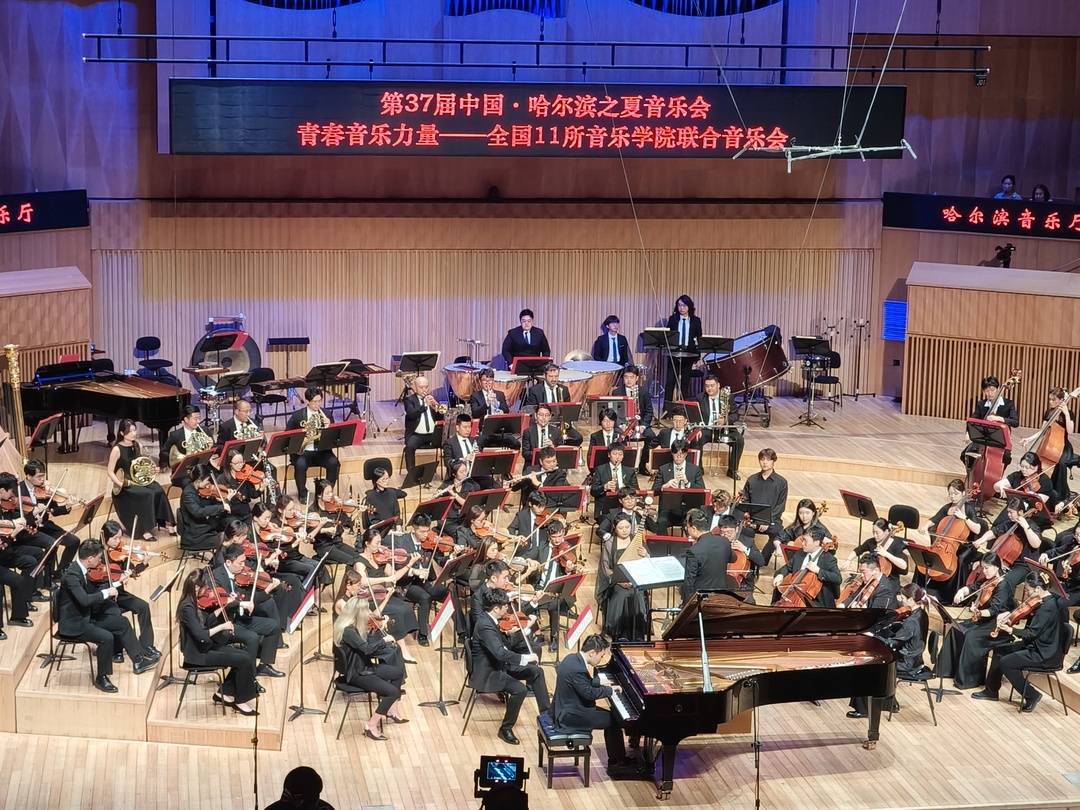 13일 저녁 제37회 중국·할빈의 여름 음악회의 일환이자 중국인민항일전쟁 및 세계 반파시스트전쟁 승리 80주년을 기념해 전국 11개 음악학원이 합동으로 펼치는 ‘청춘 음악의 힘’ 음악회가 할빈음악홀에서 성대하게 개최되였다.