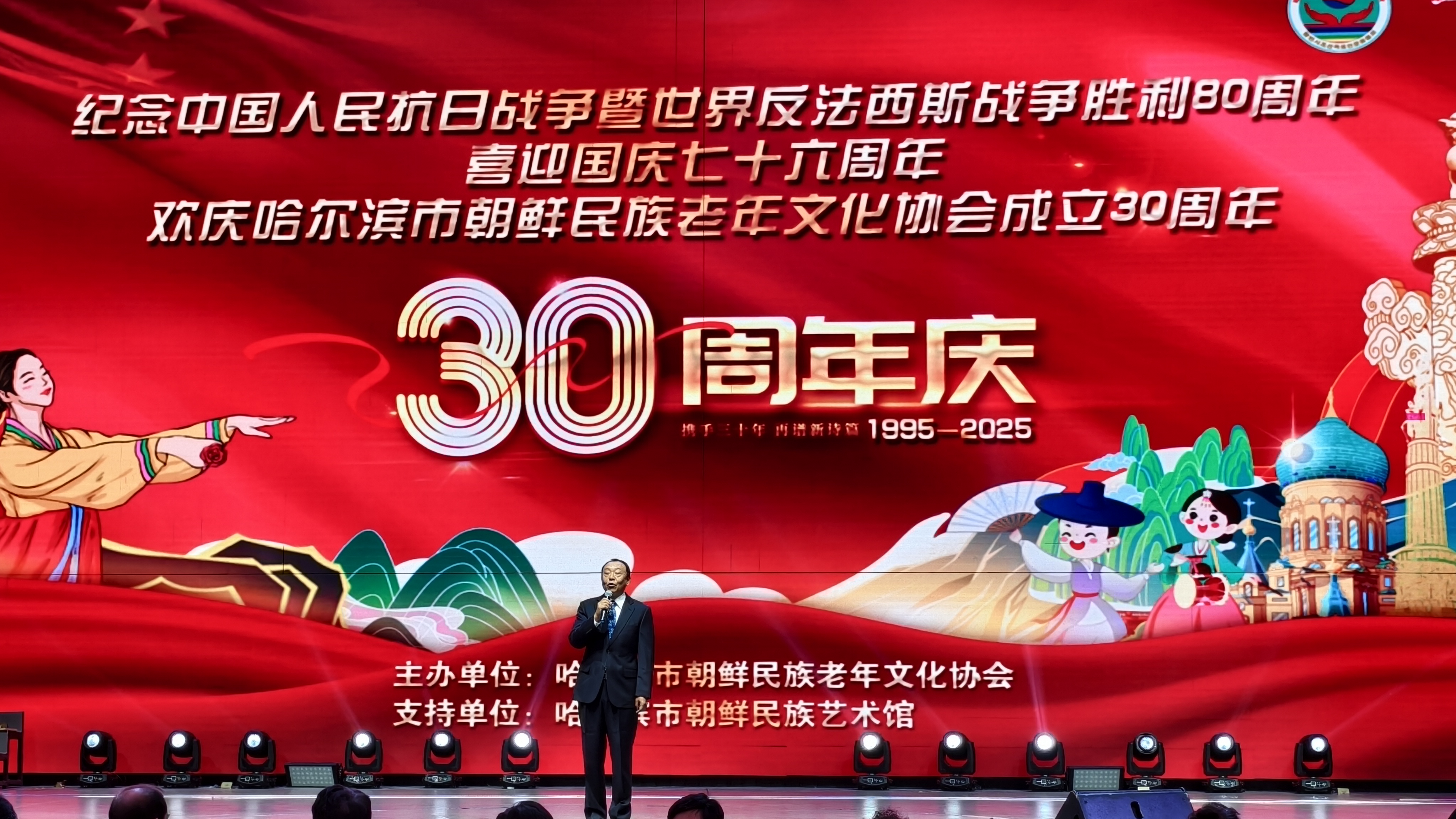 9월 28일 오전, 할빈시조선족로년문화협회 창립 30주년 기념식이 ‘홍사회(紅事會)’호텔에서 성대히 열렸다. 이번 행사는 중국인민항일전쟁 및 세계 반파시스트전쟁 승리 80주년, 중화인민공화국 창건 76주년을 앞두고 열린 만큼 더욱 뜻깊은 자리였다. 100여 명의 귀빈과 회원들이 함께 모여 협회의 30년 발자취를 돌아보고, 조선족 문화 전승과 로년 복지의 미래를 론의했다.