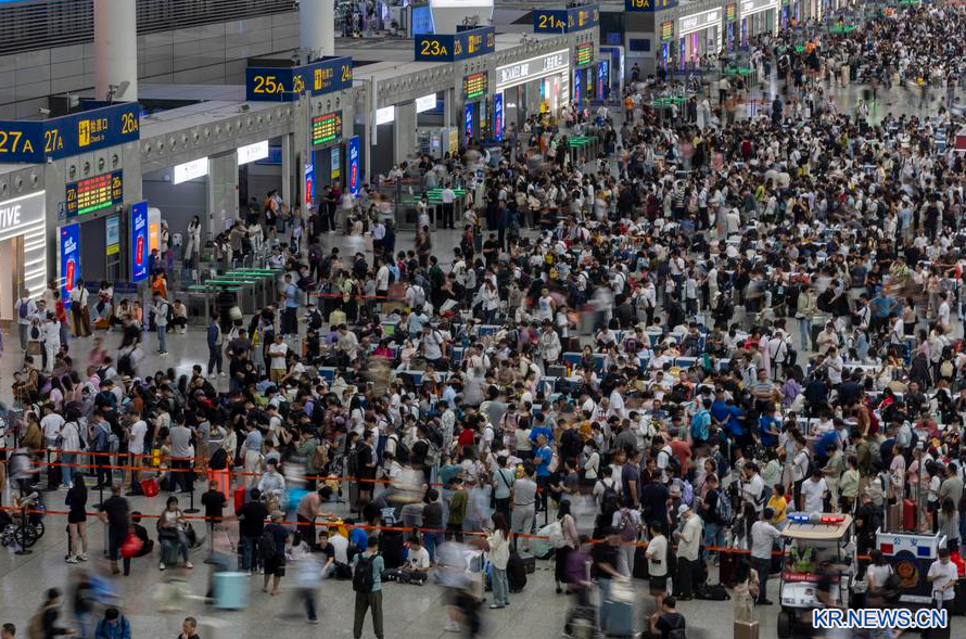 지난 1일 려객으로 북적이는 상해 홍교(虹橋)역 대합실. (사진/신화통신)