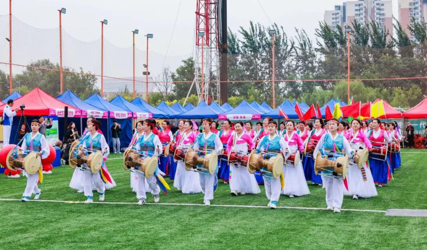 특히 개막식 볼거리는 다양한 단체들의 퍼포먼스였다. 천진시조선족예술단과 로인협회 장고대의 힘찬 북소리는 전통의 울림을 생생하게 전달했고 녀성협회와 로인협회로 구성된 오색기 대오의 화려한 퍼포먼스는 대회장을 환한 웃음으로 물들였다.