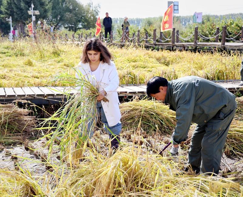 최근 목단강 녕안시 발해진 상관지촌의 '행복 넘치는 룡강·국경절 추석맞이' 제8회 풍년축제 및 '사계절 향촌문예야회' 대중문화행사현장에서 목단강사범학원 문학원(국제교육학원)에서 온 러시아, 한국, 적도기니 류학생들이 '중국 농촌을 체험하고 풍작의 기쁨을 체험하자'는 사회실천활동을 개최했다.