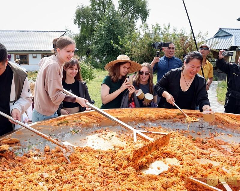 풍년축제 행사장에서 류학생들은 마을 주민들의 응원 속에 줄다리기, 조선족 떡메치기를 배우며 다양한 시골음식을 함께 맛보았다.