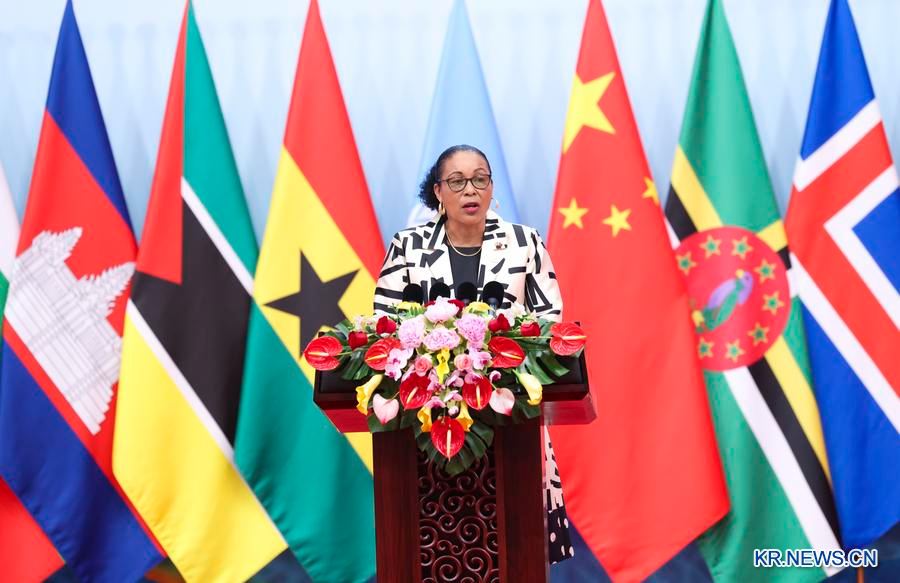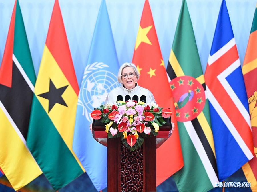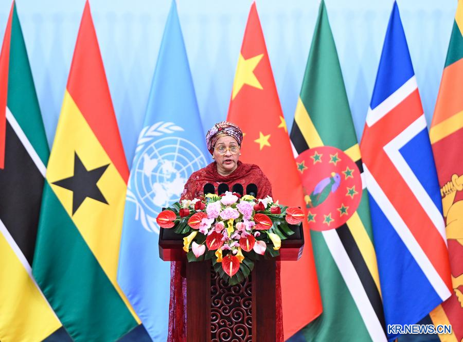 이날 아미나 모하메드 유엔(UN) 사무차장이 개막식에서 연설하고 있다. (사진/신화통신)