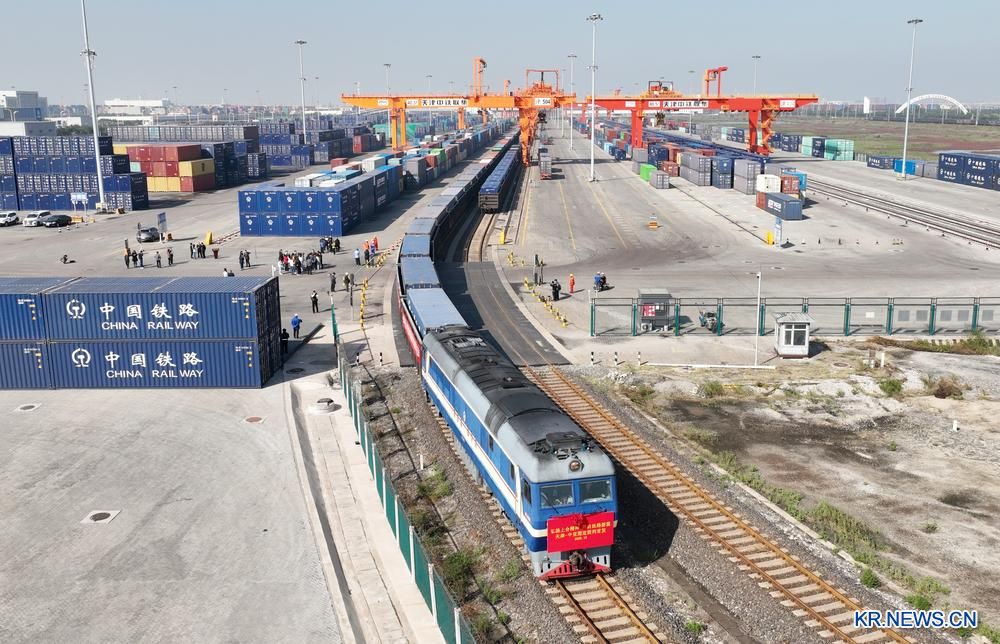 13일 가전제품, 자동차 부품 등 화물을 가득 실은 중앙아시아 렬차가 중국철로 천진(天津)컨테이너중심역에서 출발했다. 렬차는 호르고스(霍尔果斯) 통상구를 거쳐 카자흐스탄 등지로 향할 예정이다. 40FT(피트)의 컨테이너 총 55개가 적재된 이번 렬차는 약 10일에 걸쳐 화물을 운송한다. 이후 주 1회 정기 운행될 예정이다.