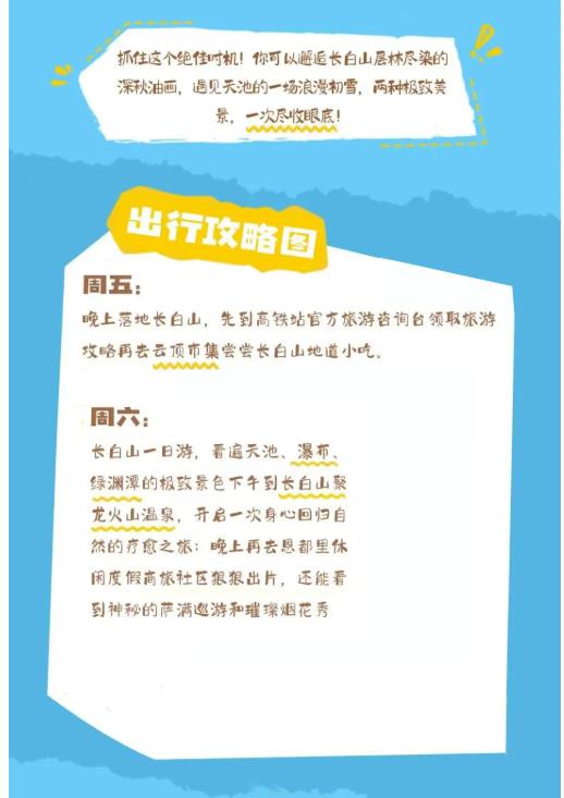 당신은 장백산 단풍으로 물든 늦가을의 유화같은 풍경을 만긱할 수 있고 천지의 랑만적인 첫눈을 맞이할 수 있다. 두가지 극치의 아름다운 경치를 한눈에 다 볼 수 있는 절호의 기회를 놓치지 말자!