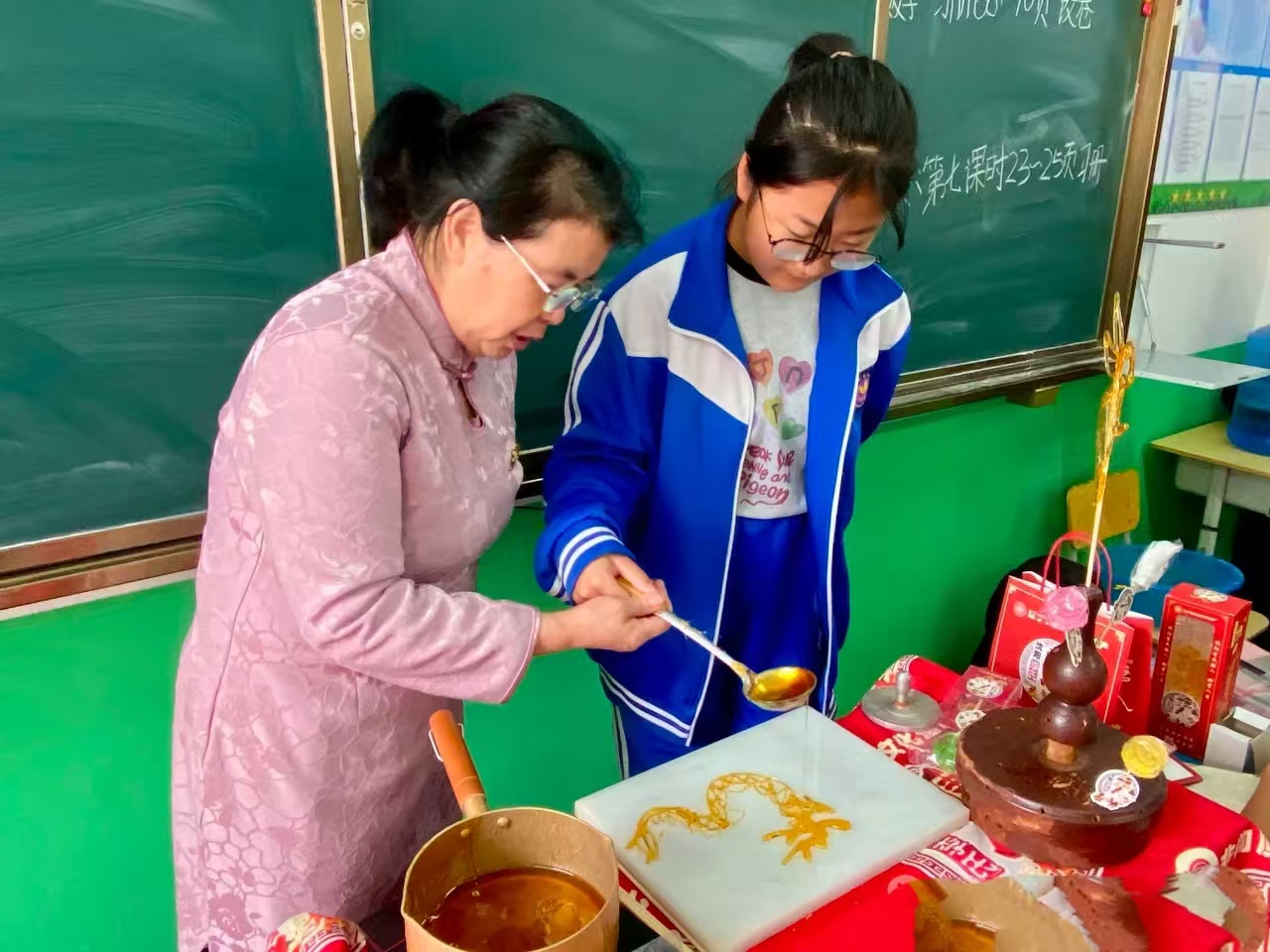 활동에서 심양시의 리씨 탕화, 김씨 매듭, 분씨 새끼꼬기, 대련시의 매듭장식화,영구시 개주민간전지, 본계시의 전통판화, 환인현의 조선족 새끼꼬기 등 특색 무형문화재가 전시됐고 학생들은 전승인의 지도하에 직접 무형문화재 기예를 체험했다.