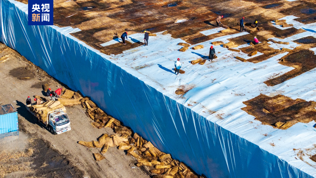 10월 26일 이른 아침 할빈빙설대세계 얼음저장장의 직원들이 숙련된 솜씨로 공사 설비를 다루며 얼음을 덮었던 외곽의 덮개를 벗겼다.