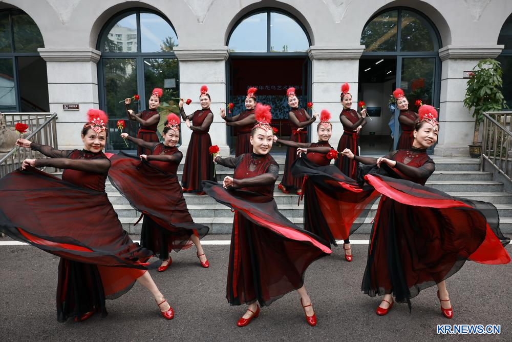 27일무한시 군중예술관에서 무한 금초(金楚)무용단의 로인들이 민족 무용을 배우고 있다.