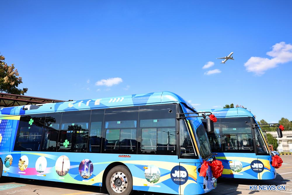 |   '제8회 중국국제수입박람회(CIIE)' 전용 셔틀버스 발차식이 29일 상해에서 열렸다. 이번에 운행에 투입된 8대의 셔틀버스는 블루를 메인 색상으로 한 세련된 디자인으로 눈길을 끌었다. 버스는 외탄(外灘)과 상해 국가컨벤션센터를 오가며 전시 참가자와 관람객의 이동 편의를 높이는 한편, 회해로(淮海路), 정안사(靜安寺), 서가회(徐家匯), 북외탄(北外灘) 등 상해 도심의 주요 상권을 련결해 운행된다. CIIE 전용 셔틀버스는 11월 1일부터 30일까지 한 달간 상시 운영될 예정이다.   출처: 신화통신 한국어채널   편집: 장성복 |