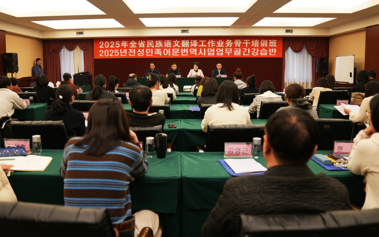 길림성민족사무위원회가 주최하고 연변조선족자치주민족사무위원회에서 주관한 2025년 길림성 민족언어번역사업 업무골간 강습반이 10월 29일, 연길시에서 개강했다.