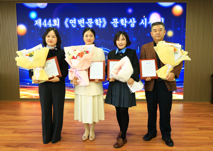 제44회 《연변문학》 문학상 수상자들(왼쪽으로부터 박영화, 현청화, 허연주, 신철호)