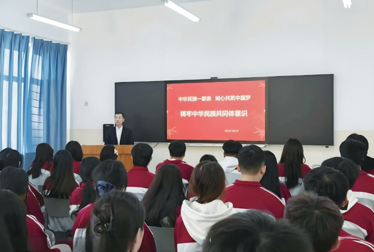 강연과정에 리교장은 질문을 오가며, 사례공유를 통해 학생들의 참여열정을 불러일으켰다. "신변의 민족단결 이야기"에 대해 물었을 때 학생들은 앞다투어 소수민족룸메이트와 함께 문화학급회의를 개최하고 룸메이트가 교정에 적응하도록 돕는 등 경력을 공유했다. 리교장은 이런 실천을 긍정하고 여러 민족의 래왕과 교류, 융합은 생활의 작은 일에서 비롯된다고 지적했다. 그는 또 학생들이 민족단결진보건설의 요구를 리해하도록 인도하고 모두가 주동적으로 실천활동에 참여하도록 권장하였다. 아울러 "다섯가지 인정"을 증강하여 교실교육이 실효를 볼수 있도록 해야 한다고 설명했다.
