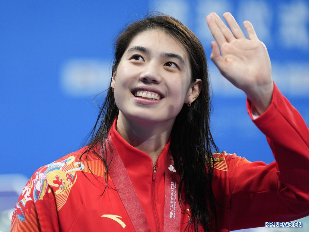 11일 광동성 심수시에서 열린 제15회 전국운동회 녀자 접영100m 결승전에서 장우비(张雨霏) 가 최종적으로 우승을 차지했다.