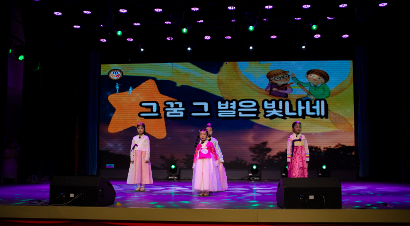 제1부 '그 꿈 그 별은 빛나네'에서는 조선족 어린이들의 동화뮤지컬과 시랑송• 무용이 결합된 독특한 퍼포먼스가 관중들에게 깊은 인상을 주었다. 특히 윤동주의 동시 <눈>, <반디불>, <조개껍대기> 랑송과 무용이 어우러진 시랑송 퍼포먼스는 어린이들이 희망의 별이 되여 빛나게 될 것이라는 것을 잘 표현했고 세종대왕, 윤동주 등 력사 속 위인이야기는 우리말, 우리글의 문화적 가치를 전달했다. 동화 뮤지컬 <늑대와 일곱마리 아기염소>는 귀여운 연기와 생생한 우리말 표현으로 관중들의 웃음와 감동을 자아냈다.