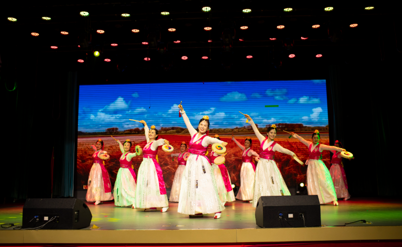 강렬한 리듬과 신나는 춤사위가 특징인 심양시조선족녀성협회회원들의 무용 <성세고혼>이 공연의 서막을 열었다.