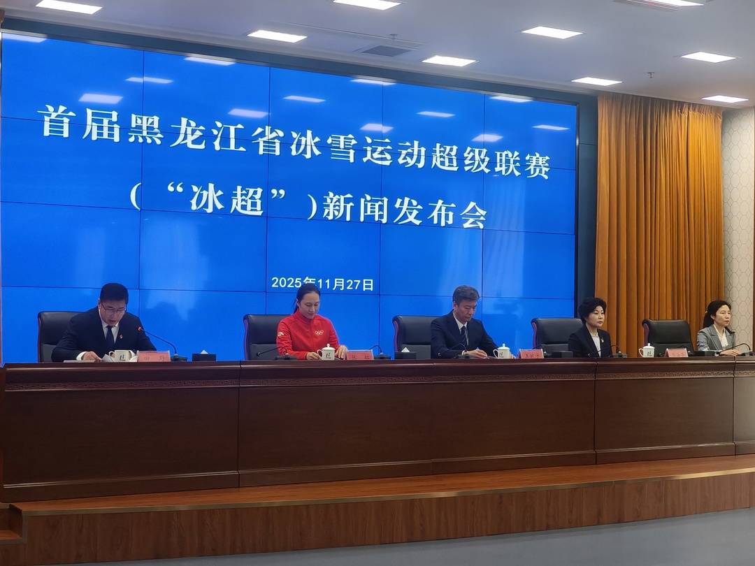 11월 27일, 제1회 흑룡강성 빙설운동 슈퍼리그전 뉴스 브리핑이 흑룡강성 체육국에서 열렸다.