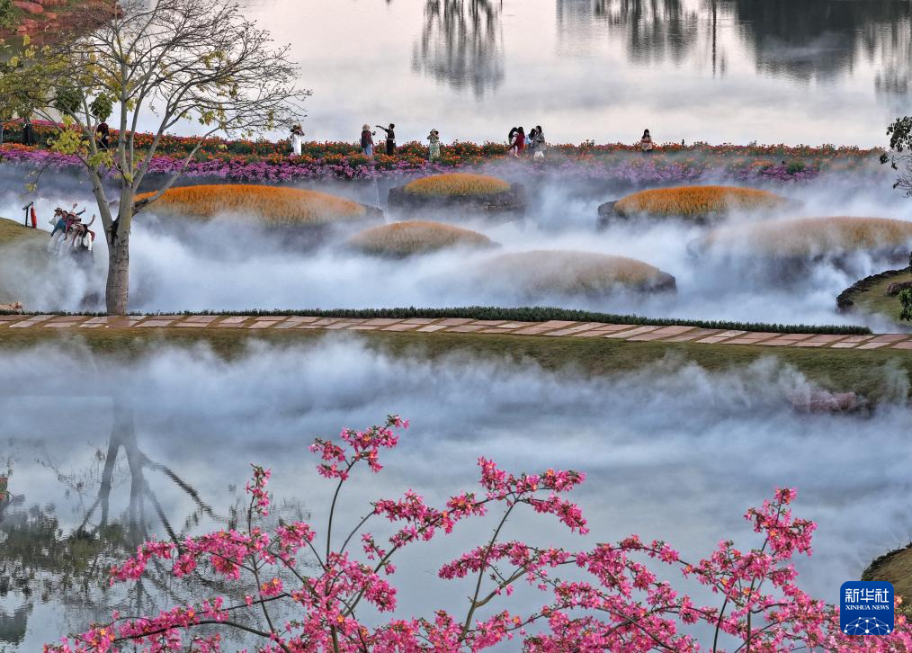 광서(廣西)좡족자치구 남녕(南寧)시 청수산(青秀山) 풍경구의 구석(丘石)화원에 꽃들이 만개해 관광객의 발길을 끌고 있다.