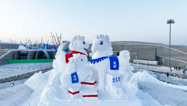 말띠해를 맞아 할빈빙설대세계가 ‘말가족 일가(小马一家)’를 조각했다.