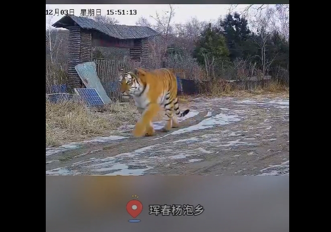 12월 3일 15시 47분, 훈춘시 양포향 한 민가가 설치한 감시카메라에 야생동북호랑이의 모습이 포착되였다. 알려진 바에 따르면 해당 민가는 줄곧 사람이 거주하지 않고 있는 상태라고 한다. 집주인은 자신의 감시카메라가 다른 야생동물을 여러번 촬영한 적이 있다고 밝혔다. 현지 생태환경이 지속적으로 개선됨에 따라 야생노루, 꽃사슴 등 동물 수도 눈에 띄게 증가했다. 이에 앞서 훈춘시 반석진 근처에서도 야생 동북호랑이와 동북표범의 흔적이 발견된 적이 있다.