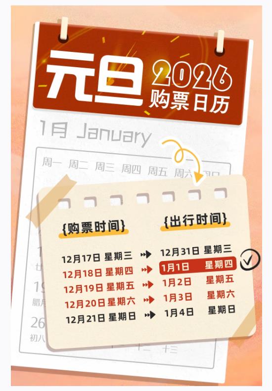 알람을 설정하여 목적지로 가는 기차표 발매시간에 주목해야 한다. 아래에 사진으로 ‘2026 양력설 기차표 구매달력’을 함께 확인해보자.