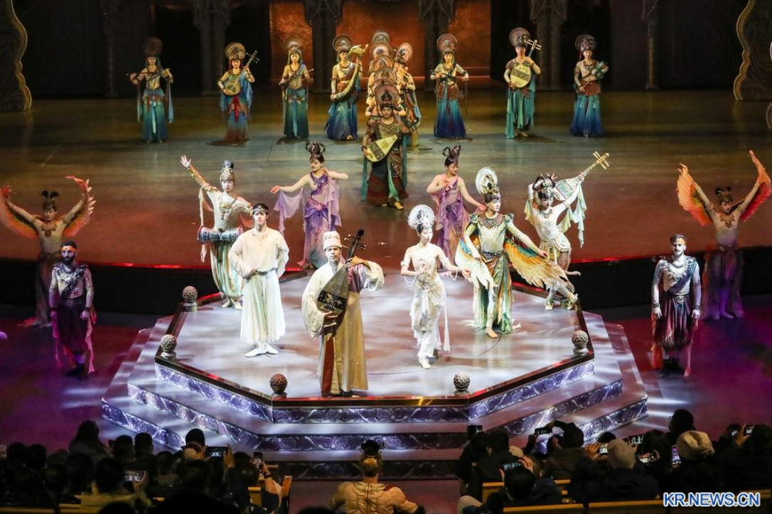 15일 저녁 '악동돈황(樂動敦煌)'의 화려한 무대.