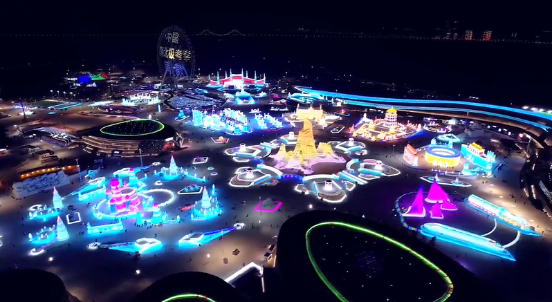 올해 할빈 빙설대세계는 중국 황학루, 벨기에 왕국 성보 등 건축물을 모티브로 한 얼음조각을 통해 동방 미학과 국제 풍정을 융합시켜 관광객들에게 전시했다.