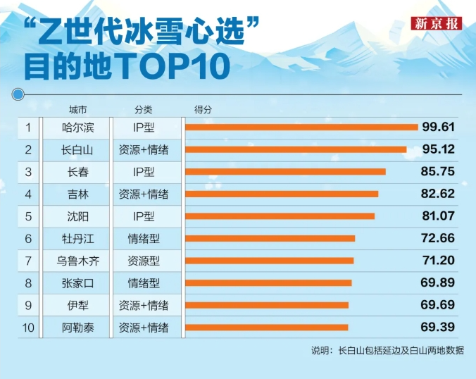12월17일 신경보 신경싱크탱크(新京智库)가 《Z세대 빙설 관광 행동 통찰 보고서 2025》(이하 '보고서')를 발표했다. 보고서에 따르면 Z세대가 빙설 려행 시장의 '신규 성장 동력'으로 부상하고 있으며 그들의 독특한 소비 성향이 업계 구조를 재편성하고 있다. 려행지 선택 측면에서 동북 지역이 독보적 지위를 차지했으나 다른 빙설 려행지들도 점차 부상하고 있다.