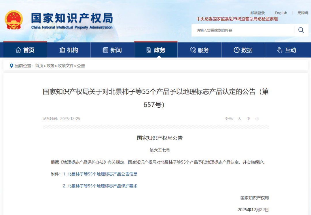 최근, 국가지식재산권국 웹사이트에 공지를 발표해 55개 제품에 지리적표시제품 인증을 부여한다고 밝혔다. 그중 흑룡강성의 9개 제품이 인증을 받았다.
