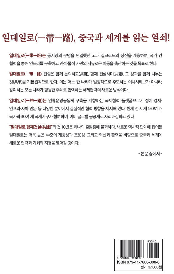 이 책은 중국 정부가 일대일로 구상을 제시한 이후 발표해 온 공식 정책 문헌을 토대로, 과거·현재·미래라는 시간적 흐름에 따라 일대일로의 전개 과정과 발전 논리를 체계적으로 정리하고 심층 분석한 연구서다. 한국어 독자를 대상으로 한 최초의 종합적 일대일로 연구서라는 점에서 학술적·현실적 의미가 크다는 평가를 받고 있다.