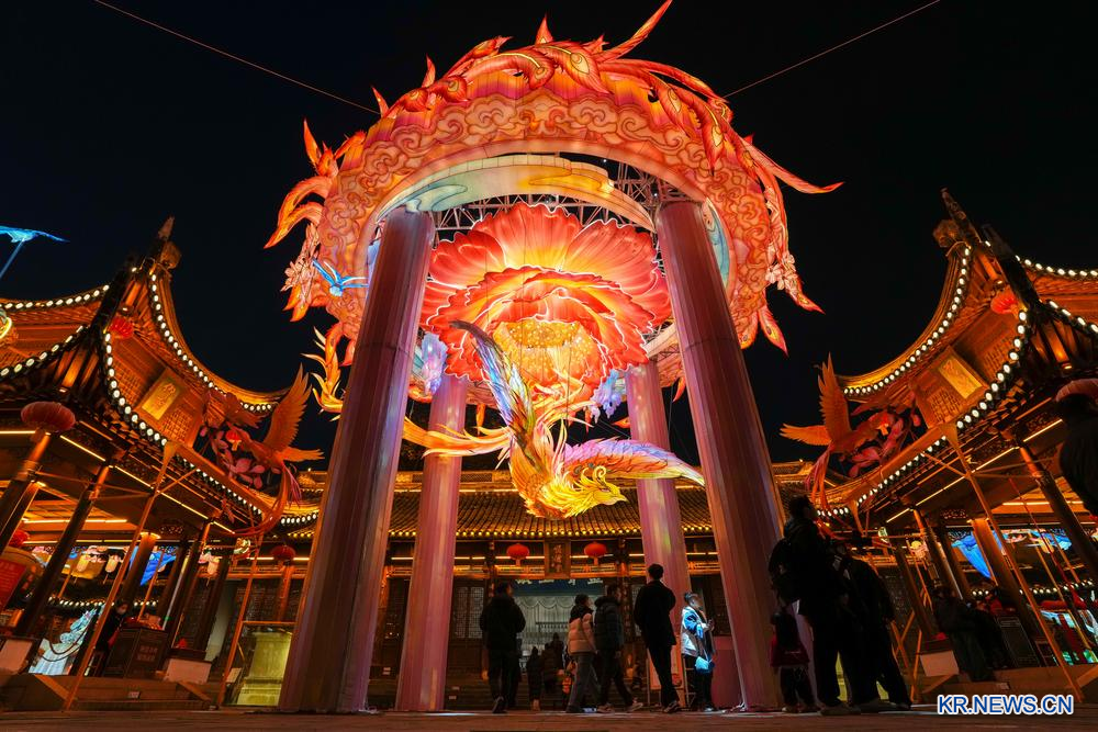 2026년 새해를 앞두고 남경(南京)시 진회(秦淮)구 부자(夫子)묘 대성전(大成殿) 관광지가 화려한 등불을 밝혀 시민과 관광객의 눈길을 사로잡았다.