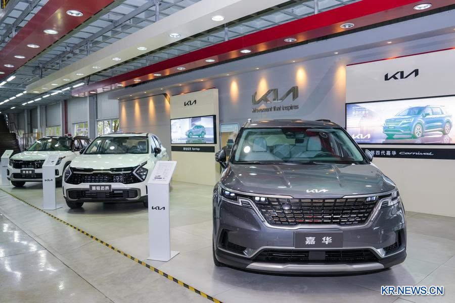 2025년 10월 16일 중한(염성·盐城)산업단지에 위치한 강소열달(悦达)기아자동차에 차량이 전시돼 있다. (사진/신화통신)