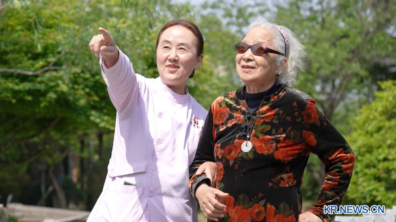 청도 중강료양보호센터에서 간호사와 로인이 산책하고 있다. /취재원 제공