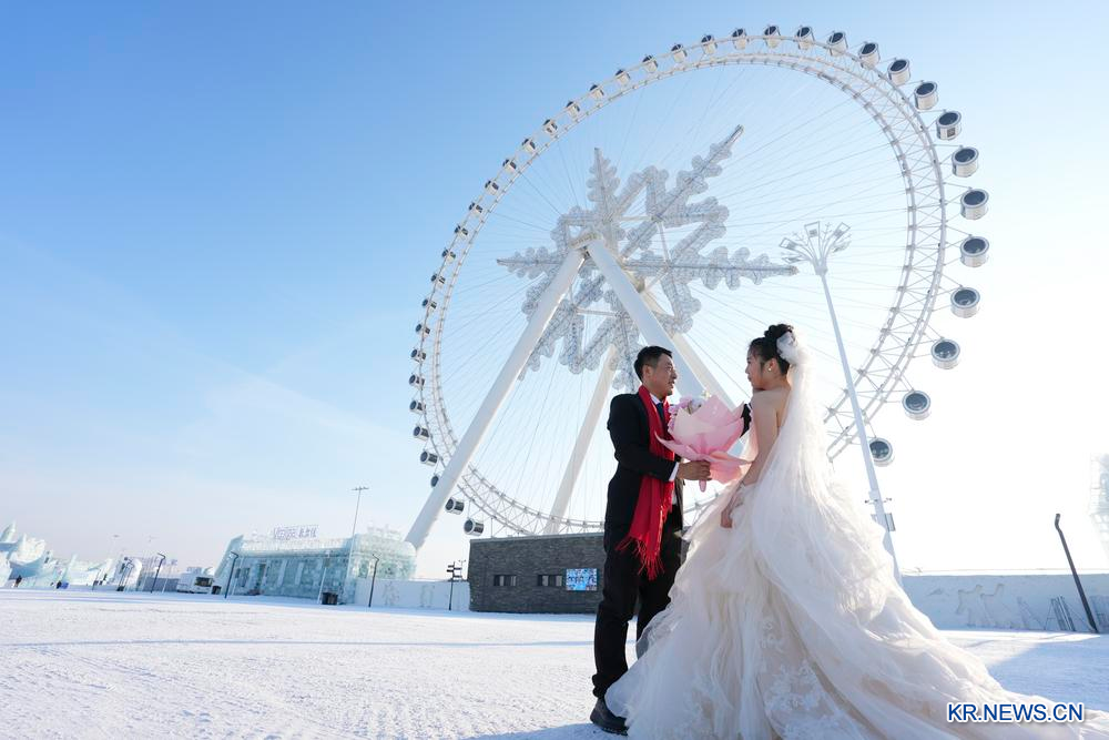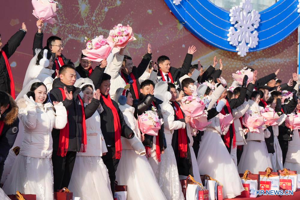 할빈(哈爾濱) 제42회 공익 빙설 단체 결혼식이 6일 할빈 빙설대세계 단지에서 거행됐다. 중국 18개 성, 자치구, 직할시에서 온 42쌍의 신혼부부가 동화 같은 빙설세계 속에서 혼례식을 치렀다. 이번에 42번째를 맞은 할빈 공익 빙설 단체 결혼식은 지금까지 20여 개 국가의 1천362쌍의 부부를 탄생시켰다.