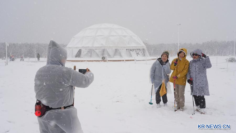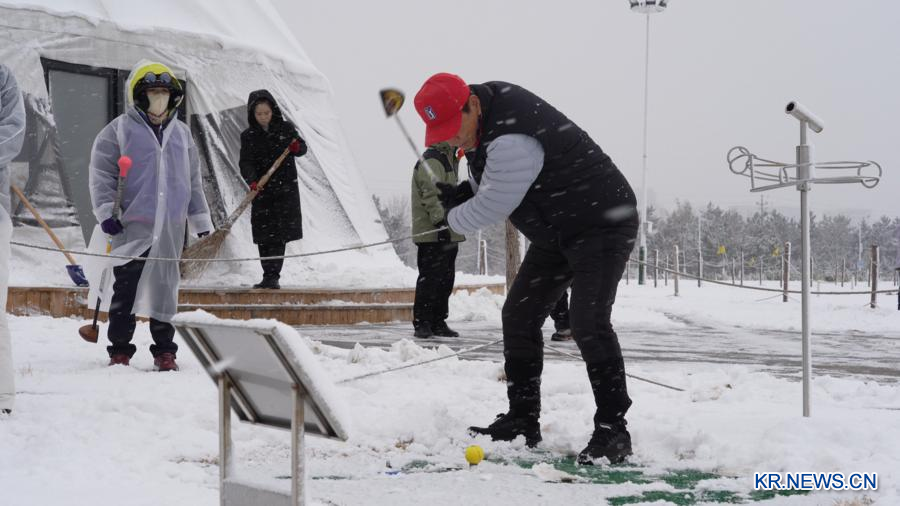 2025년 12월 4일 눈이 내리는 위해에서 파크골프를 즐기는 한국 관광객. /취재원 제공