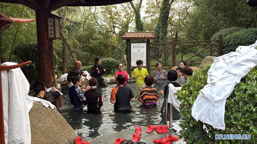2025년 11월 16일 위해 천목(天沐) 온천 리조트에서 온천욕을 즐기는 한국 관광객. /신화통신