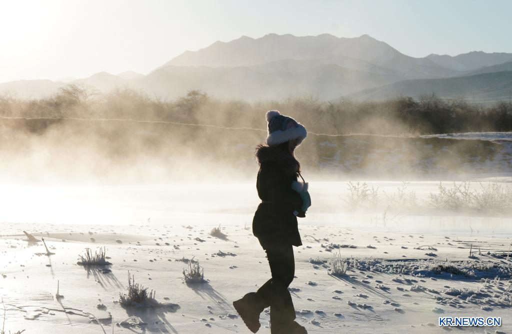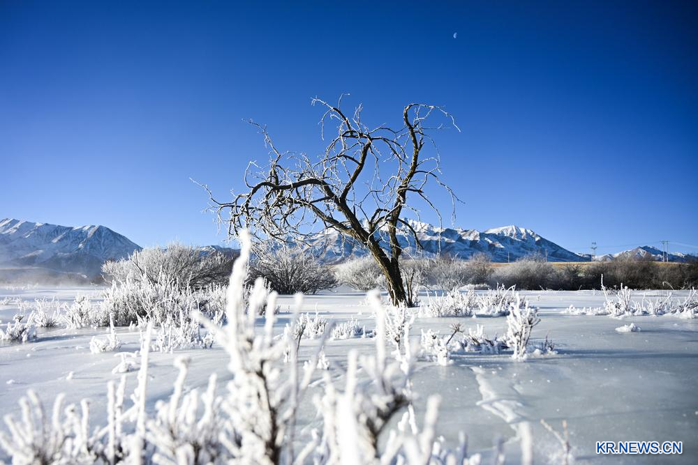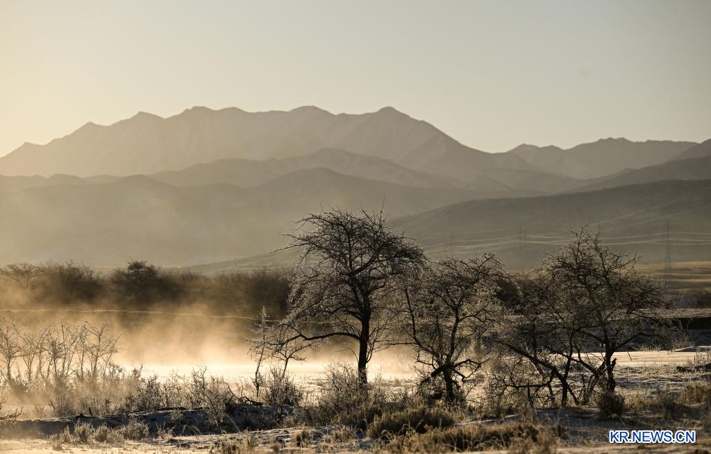 한겨울 청해(青海)성 해북(海北)장(藏)족자치주 기련(祁連)현 일대에 상고대 절경이 펼쳐지며 기련산 일출과 어우러져 한 폭의 그림 같은 모습을 자아낸다.